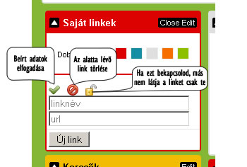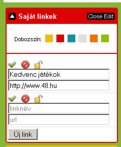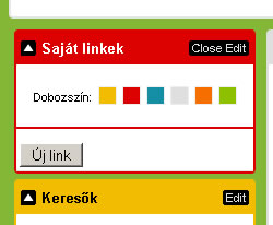 A doboz jobb felső sarkában lévő Edit feliratra kattintva elkezdheted a doboz átszínezését és az új linkek felvitelét, vagy a meglévők módosítását vagy törlését.